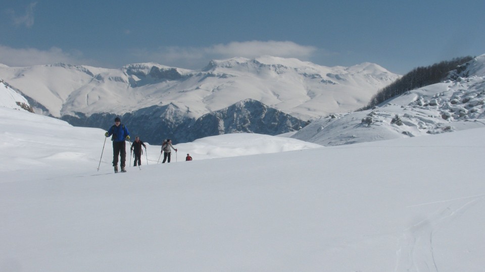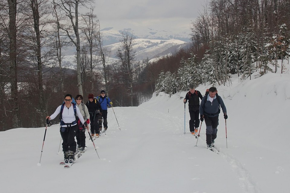 Od Sarajeva do planinske koče, kjer smo bivali in naredili prijetne turne smuke. Povzpeli smo se na Crveni kuk, 1733 m, Baturak, 1769 m, Glatko, 1791 m in Mokre stijene.