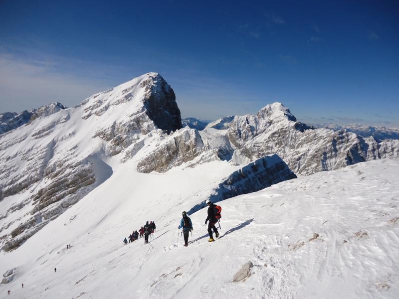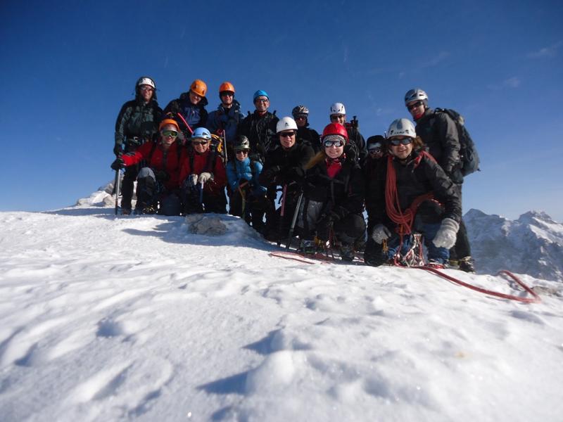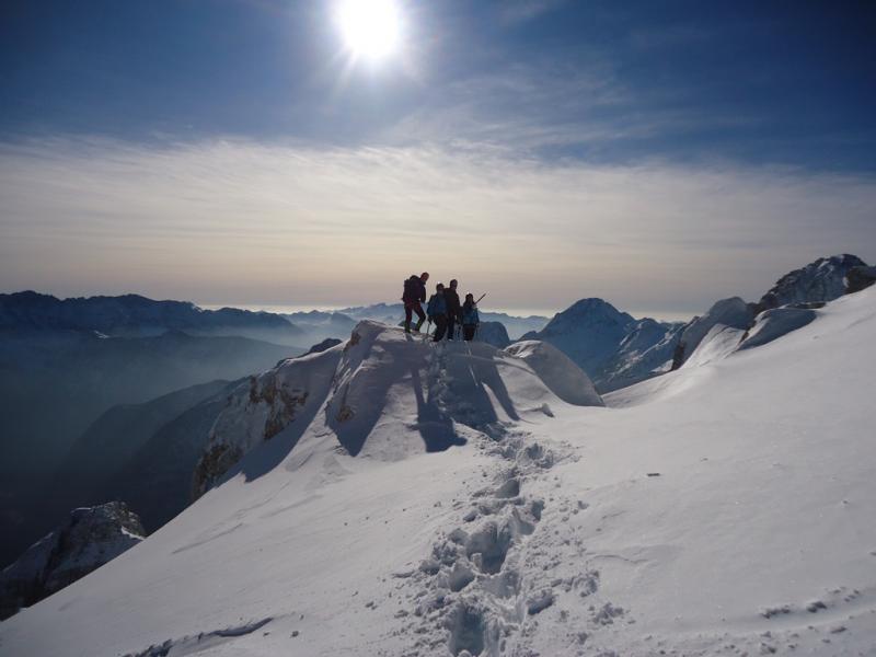 Zimski tečaj gorništva za zahtevne ture je potekal 21. in 22. januarja na Vršiču. Prvi dan smo se učili osnovne vozle in se s pomočjo vrvne ograje po severni strani povzpeli na vrh Vršiča. Sestopili smo po grebenu, spodaj pa vadili še zaustavljanje s cepinom pri zdrsu in izdelavo varovališča v snegu. Naslednji dan smo se v lepem in vetrovnem vremenu povzpeli še na Malo in Veliko Mojstrovko.